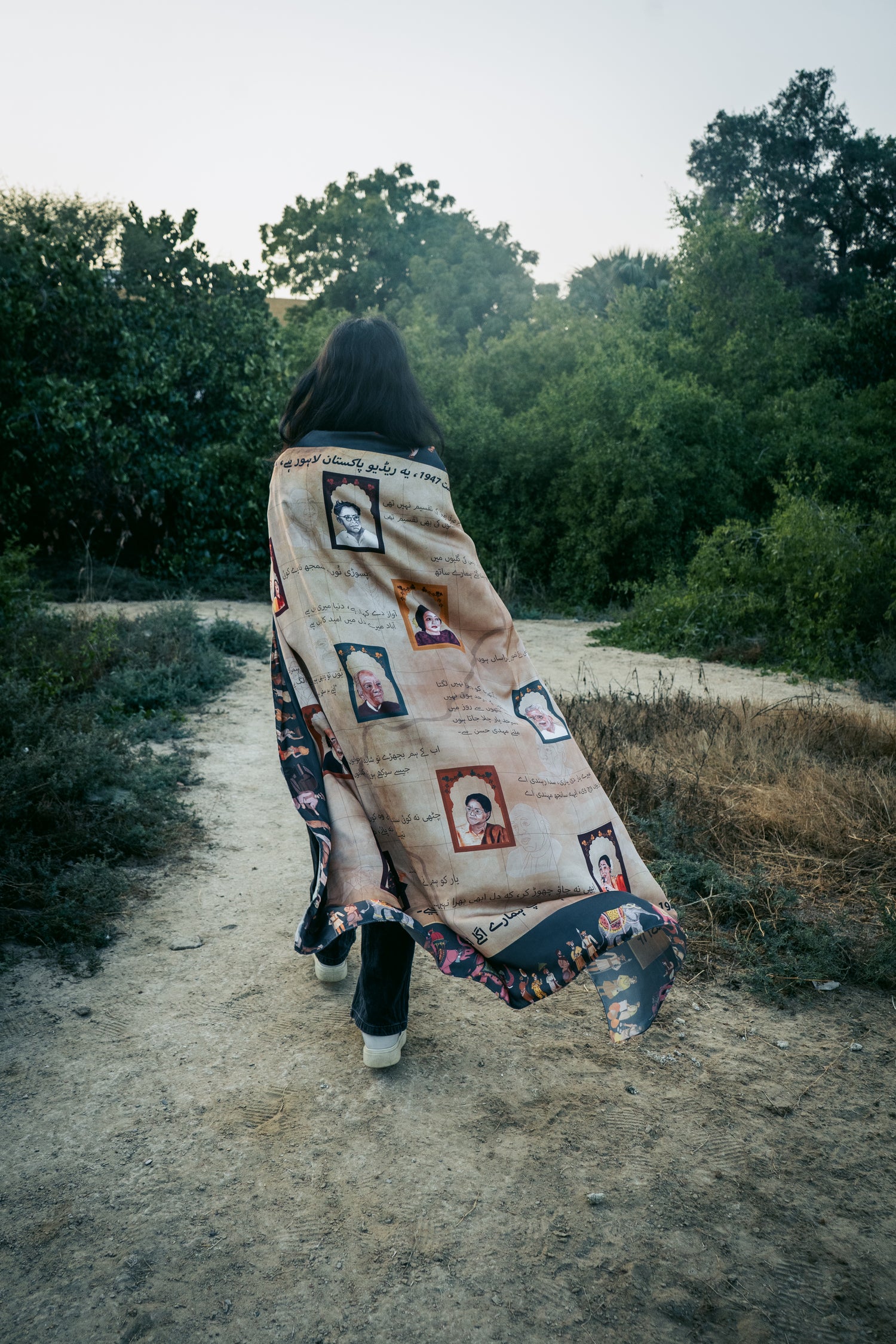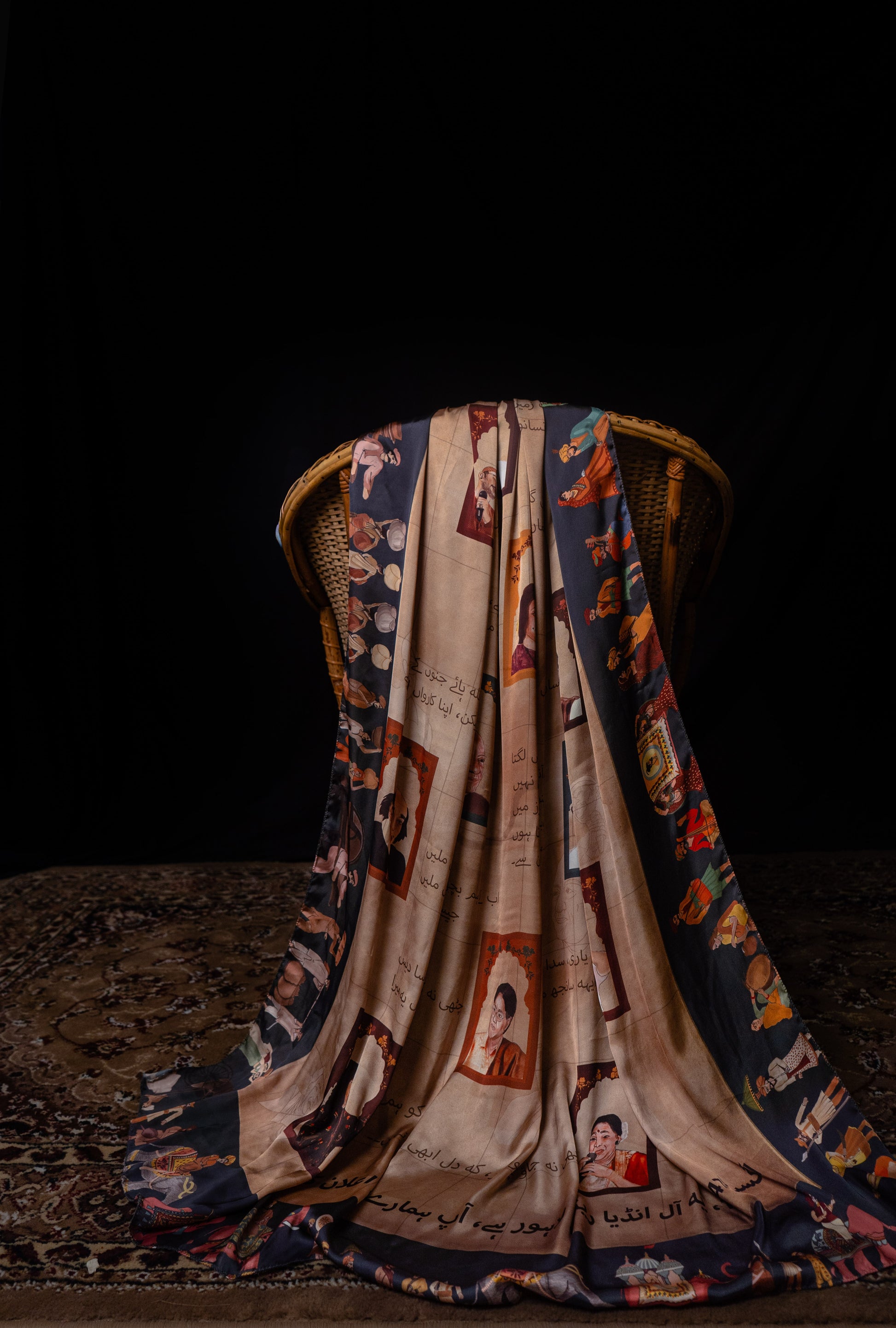 Developed over 150 dedicated hours and nearly 100 hand-drawn motifs, this scarf visualizes a dialogue between the celebrated artists of Pakistan and India - voices once intertwined through shared culture, now separated by borders.